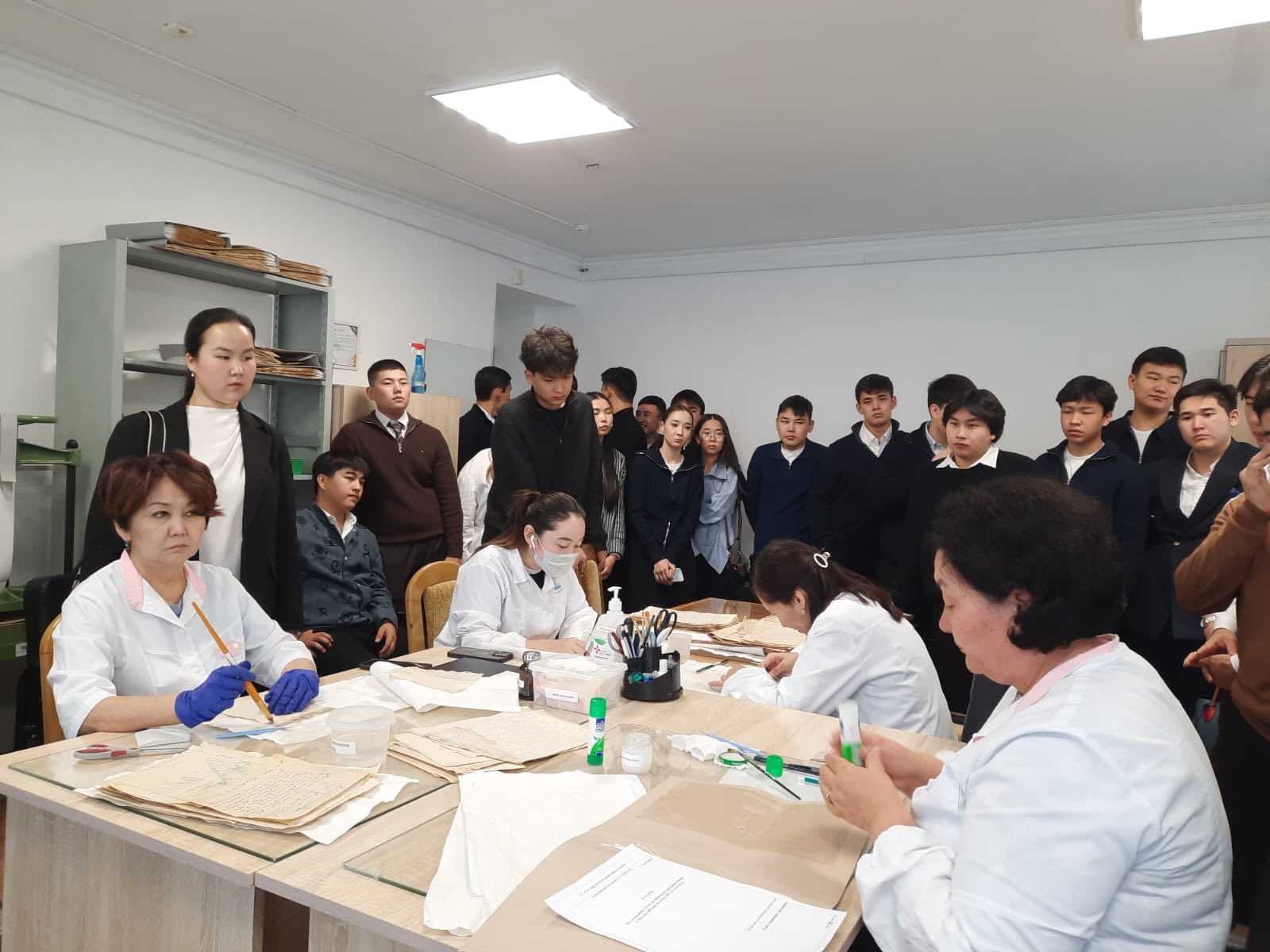 Еуразия гуманитарлық институтының жоғары колледжі студенттері архивке келді. «Құқықтану» мамандығы студенттерінің негізі мақсаты - теориялық білімдерін іс жүзінде бекіту, архив қызметімен және құжаттарды сақтау, жүйелеу, қорғау үдерістерімен тереңірек танысу болды.