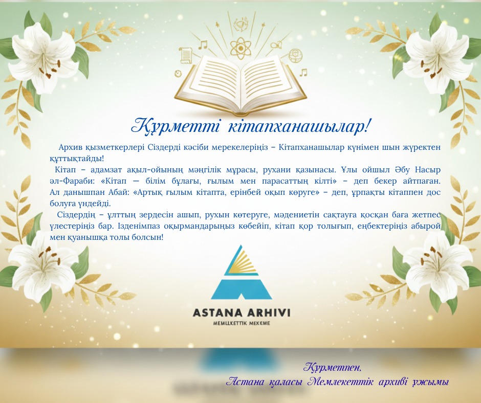 Архив қызметкерлері Сіздерді кәсіби мерекелеріңіз – Кітапханашылар күнімен шын жүректен құттықтайды!